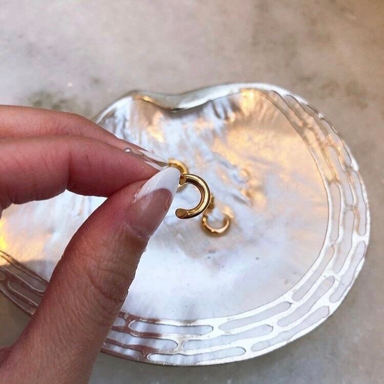 丸みを帯びた小ぶりなフープピアス